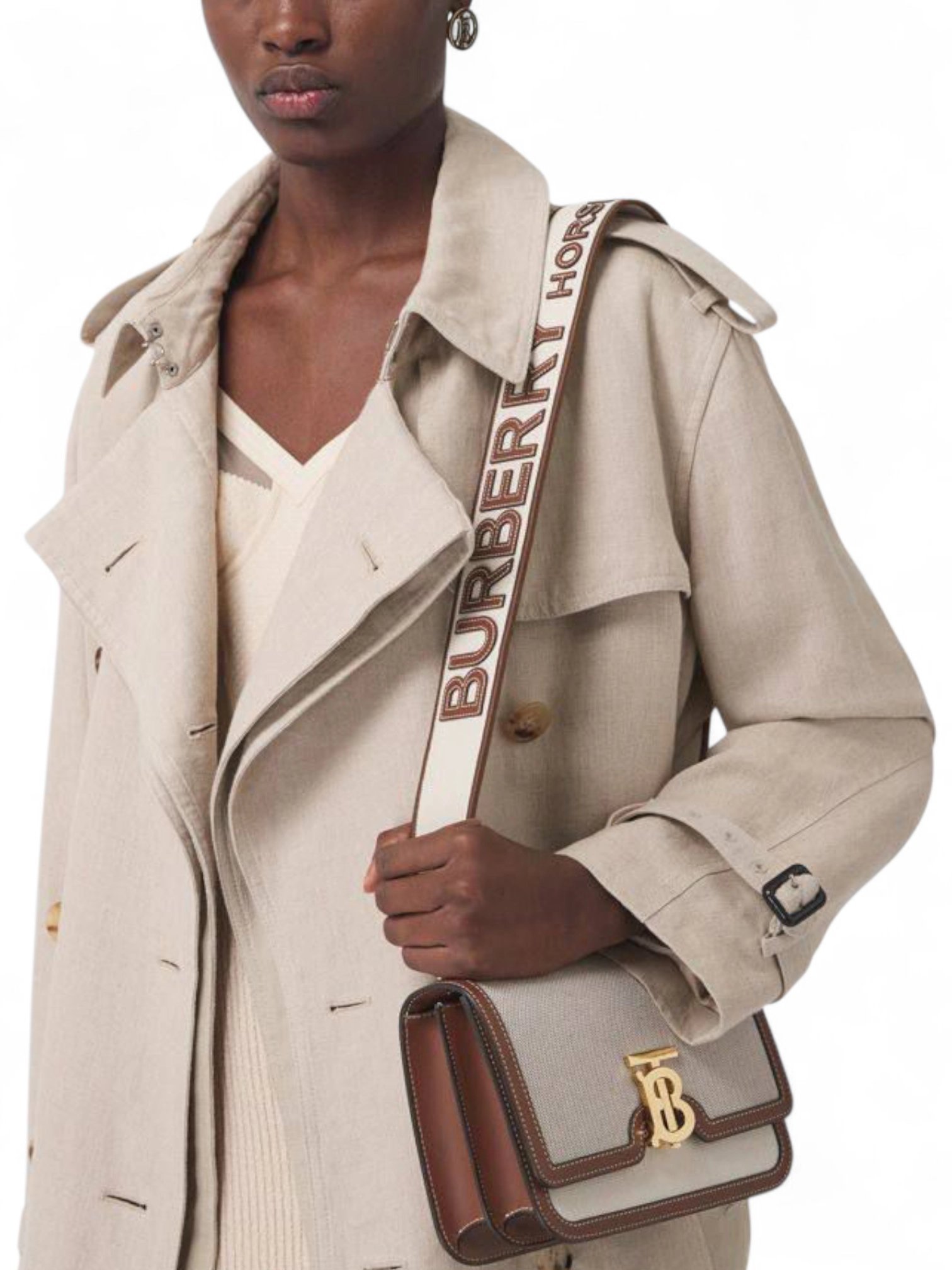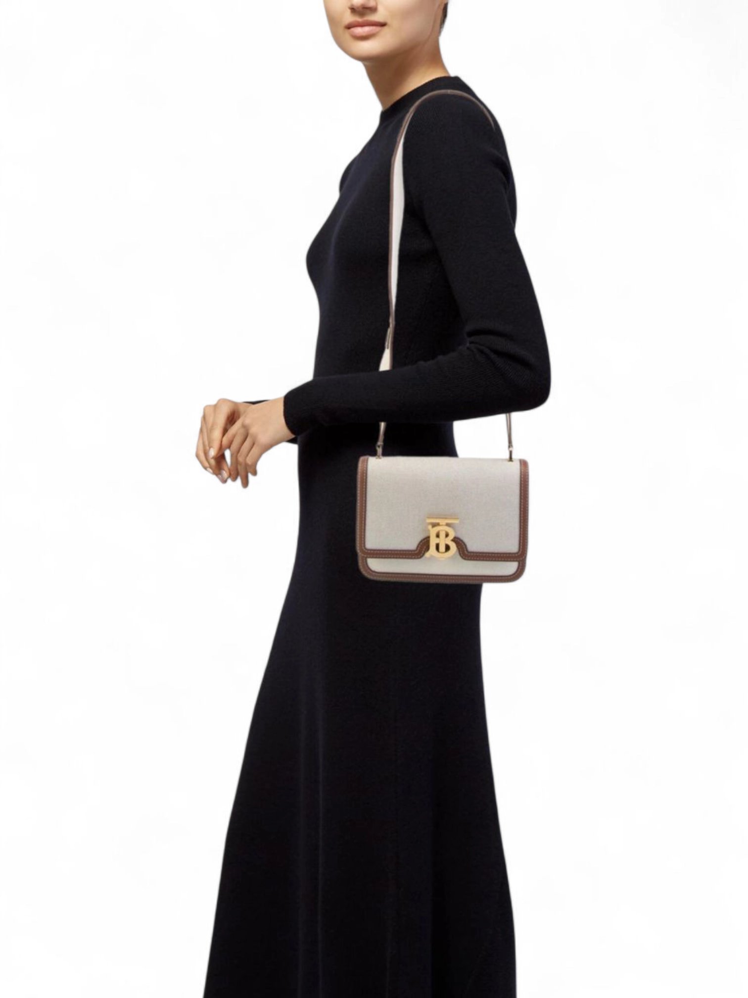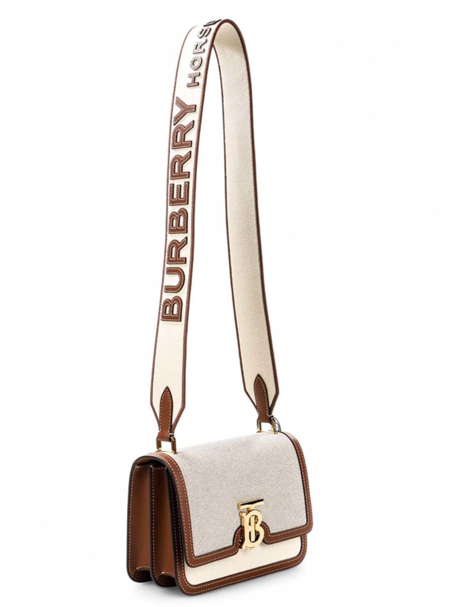 Burberry Leather Trimmed Canvas TB Bag & Brand Box size 21*15