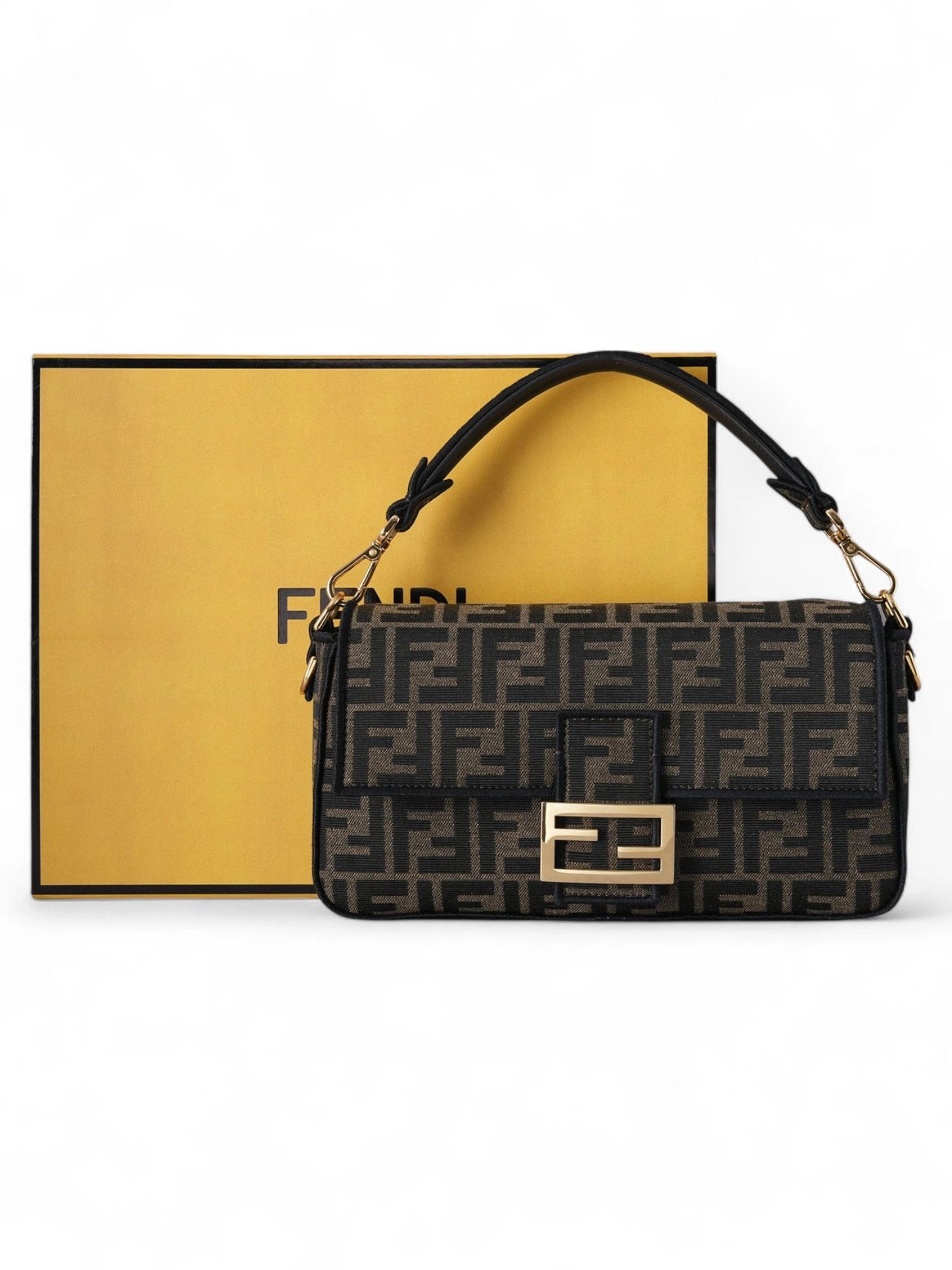 FENDI Baguette Brown FF jacquard fabric bag + Brand Box , size 27*16