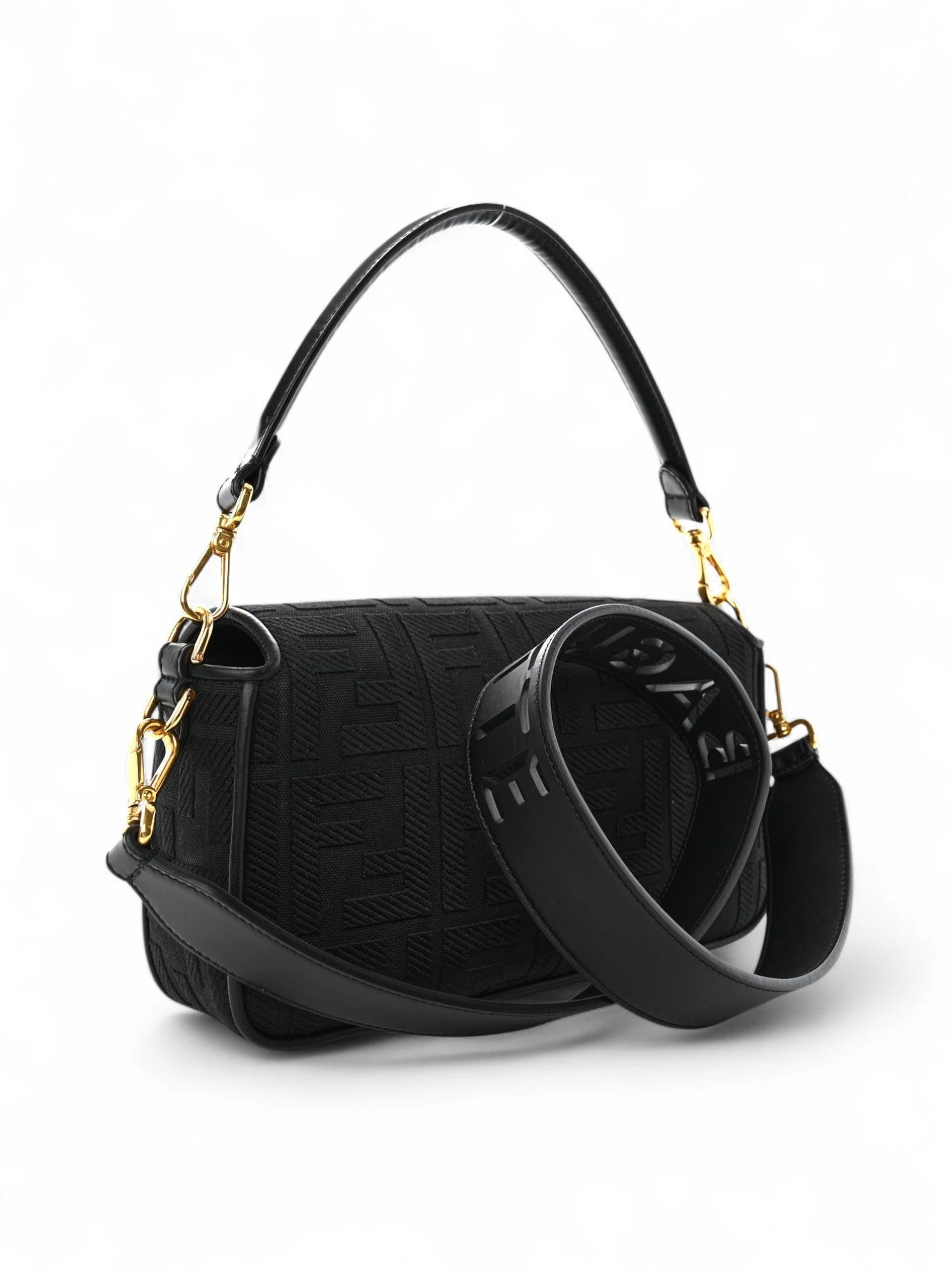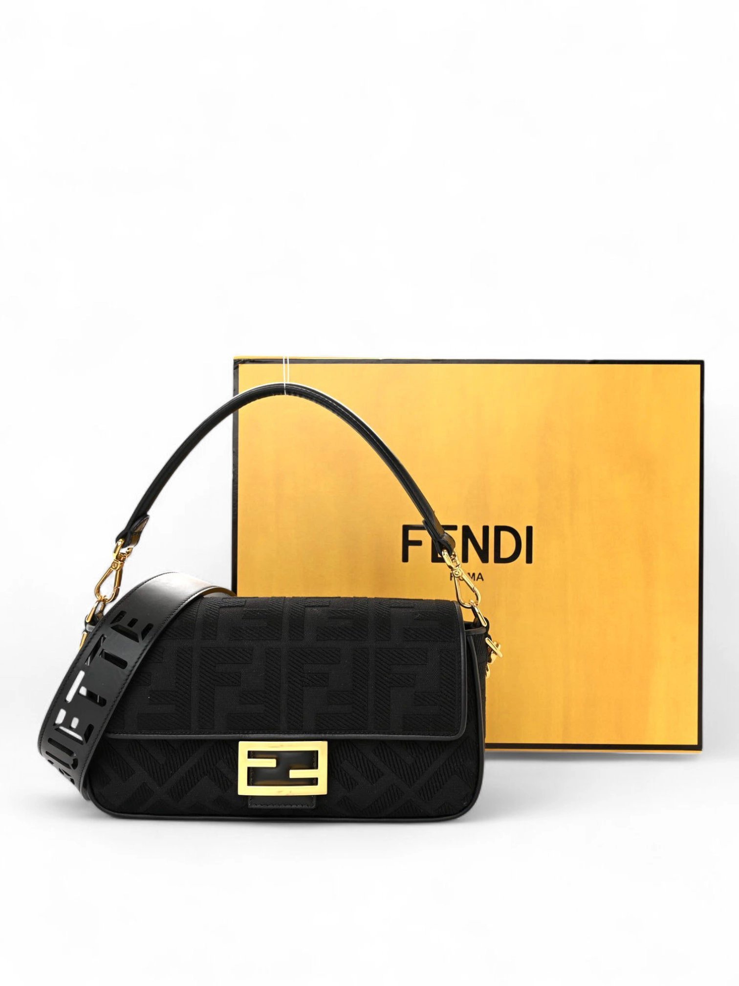 FENDI Canvas Vitello King Extra Strap FF Embroidered Baguette + Brand Box , size 26*14