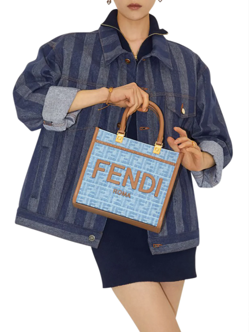 Fendi Denim FF Small Sunshine Shopper + Brand Box size 25*21