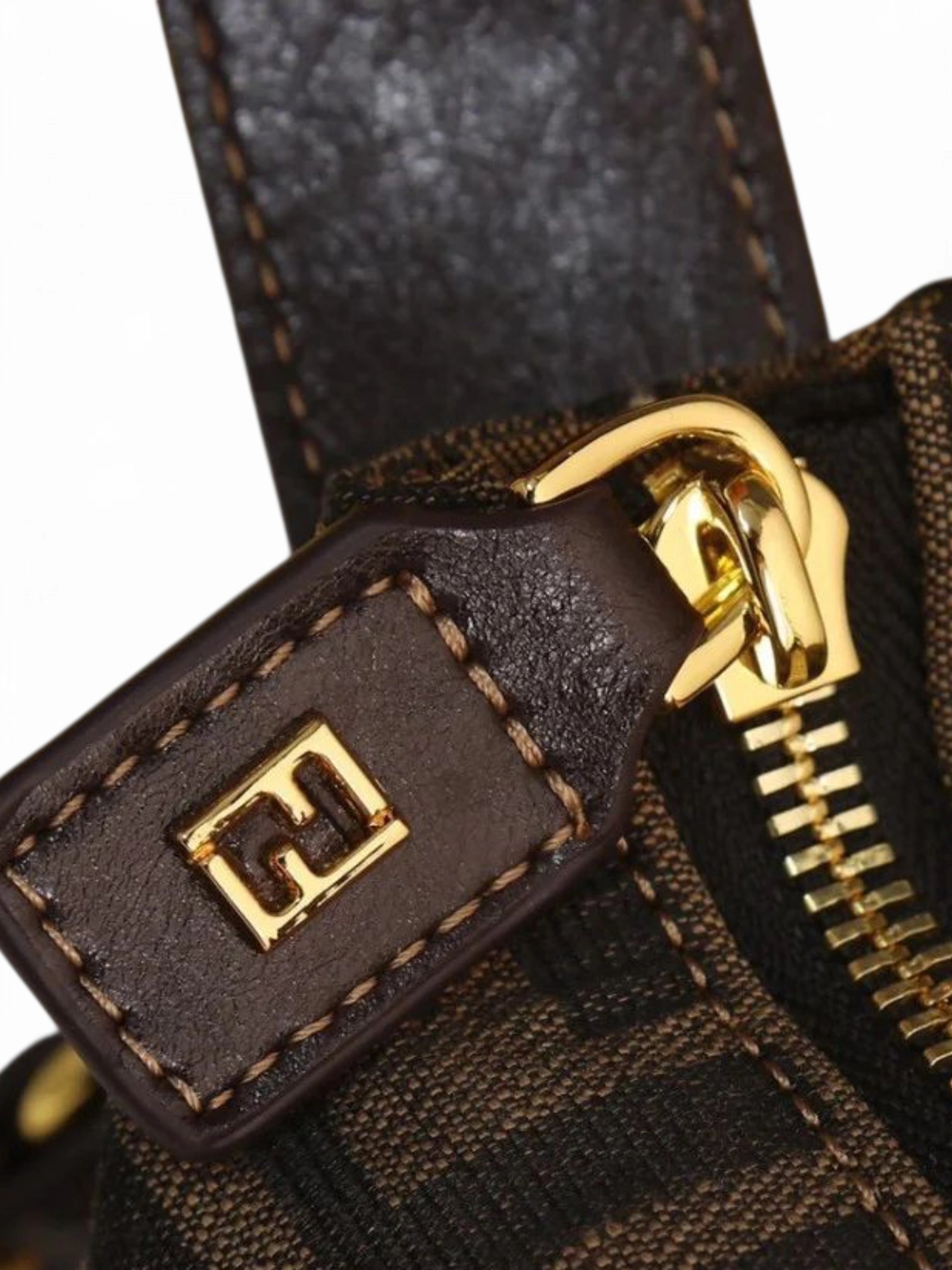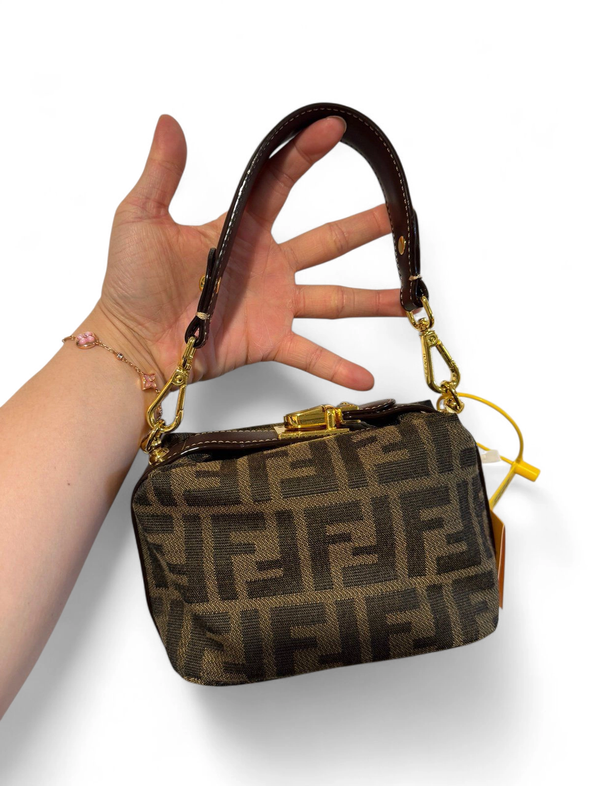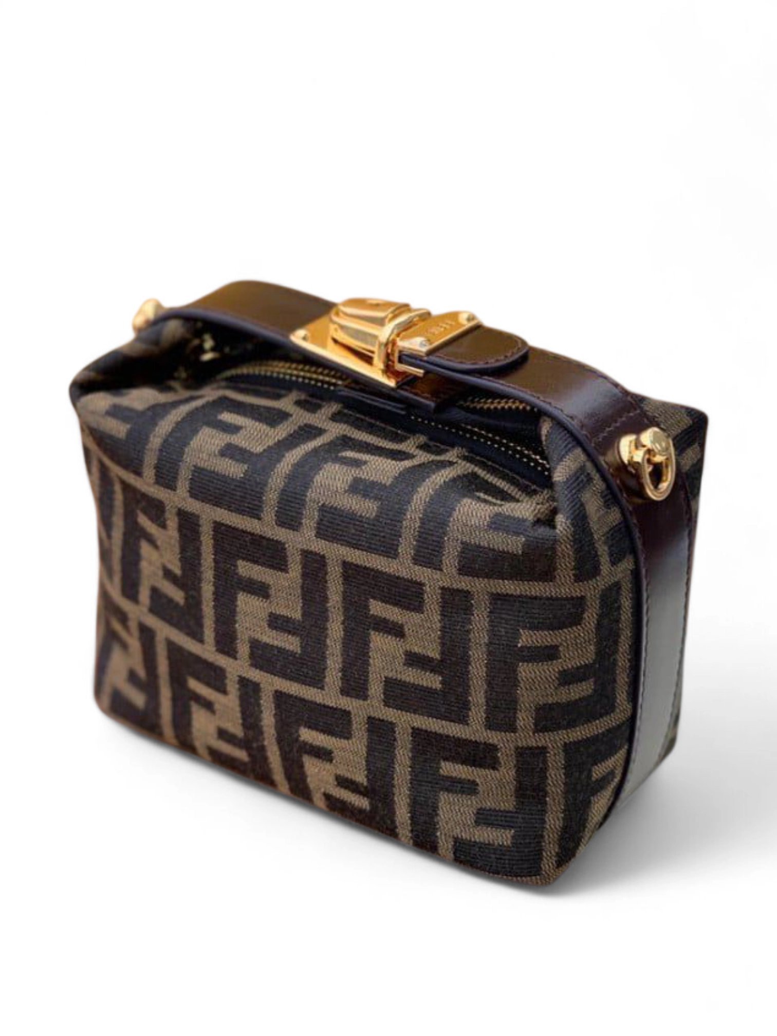 FendiVintage Push Lock Zip Pouch Zucca Canvas Small + Brand Box , size 18*11