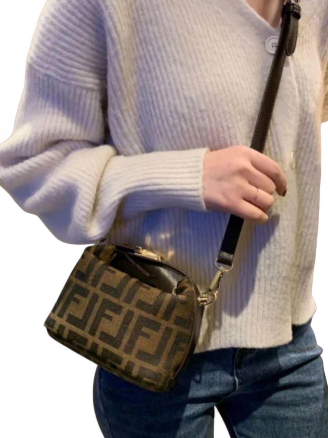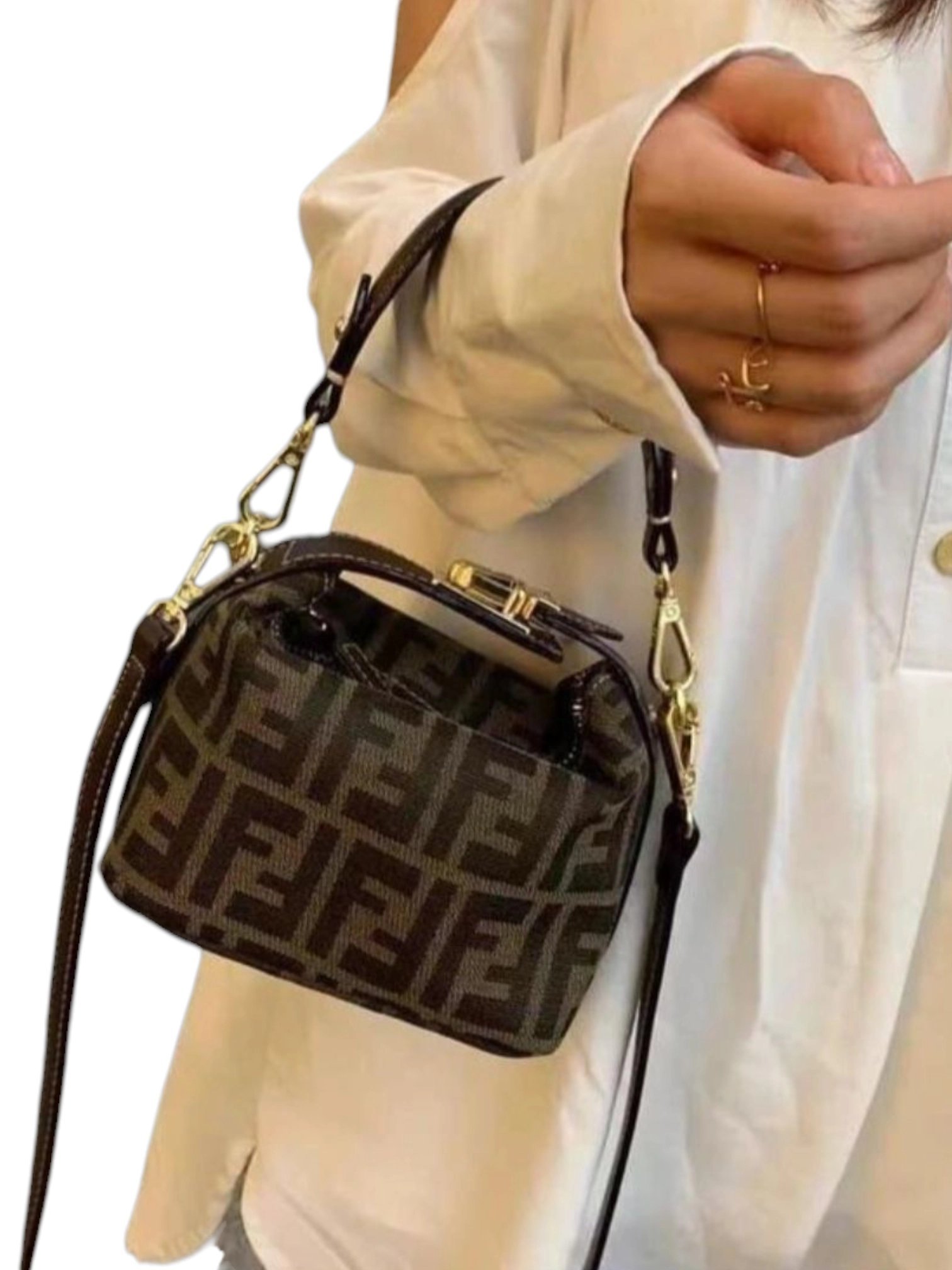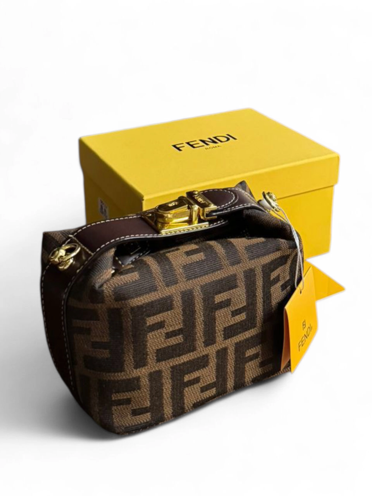 FendiVintage Push Lock Zip Pouch Zucca Canvas Small + Brand Box , size 18*11