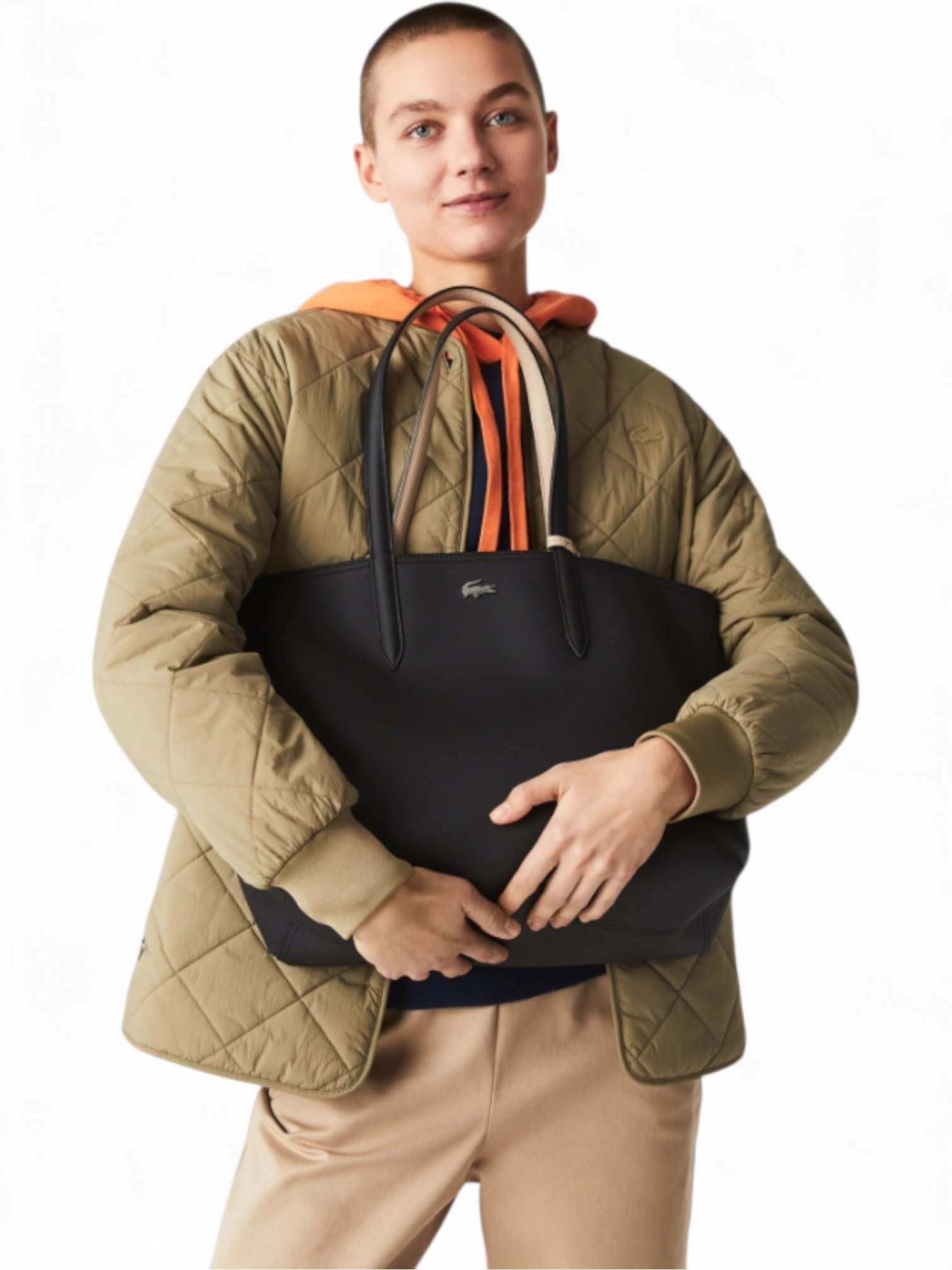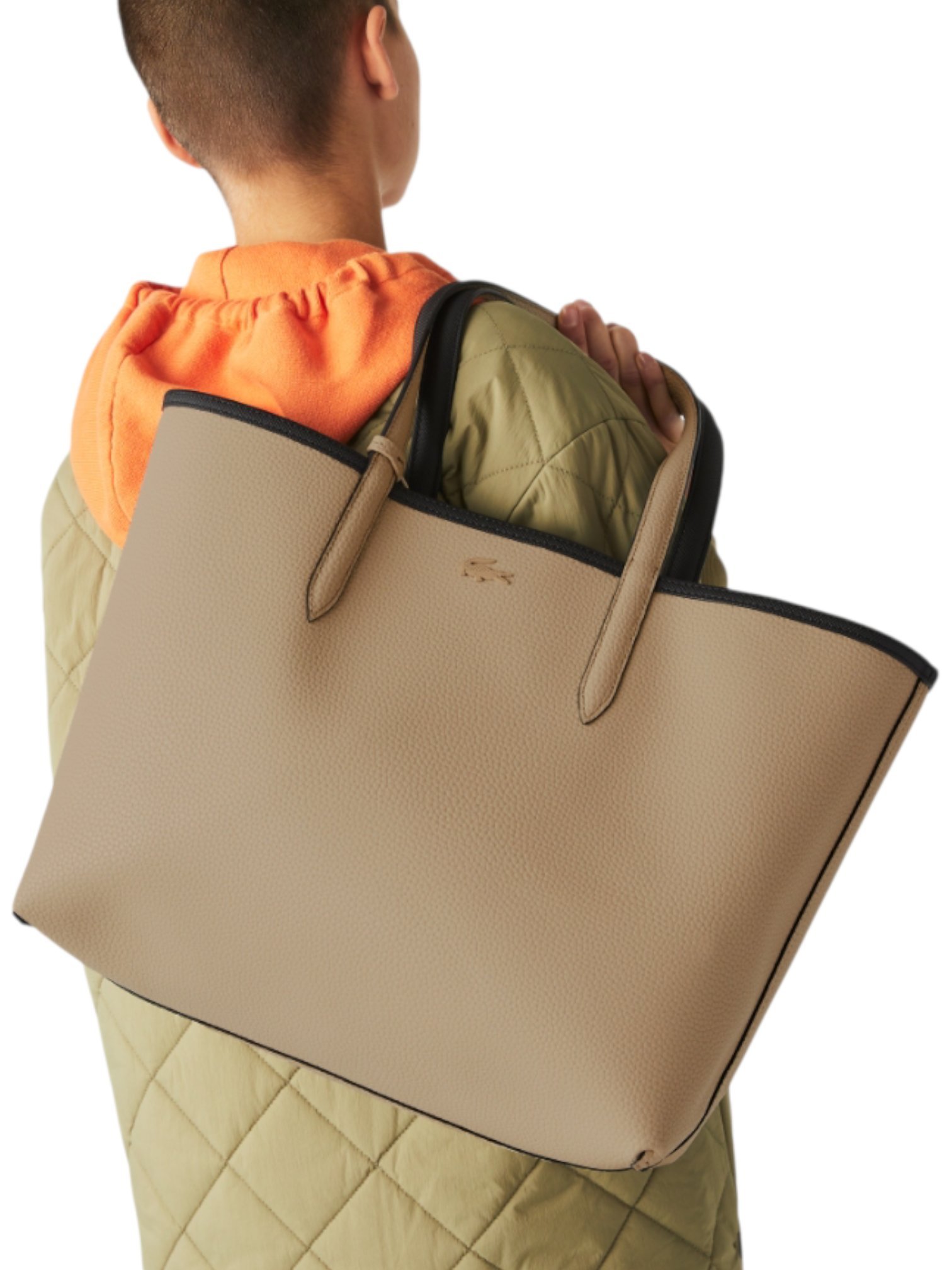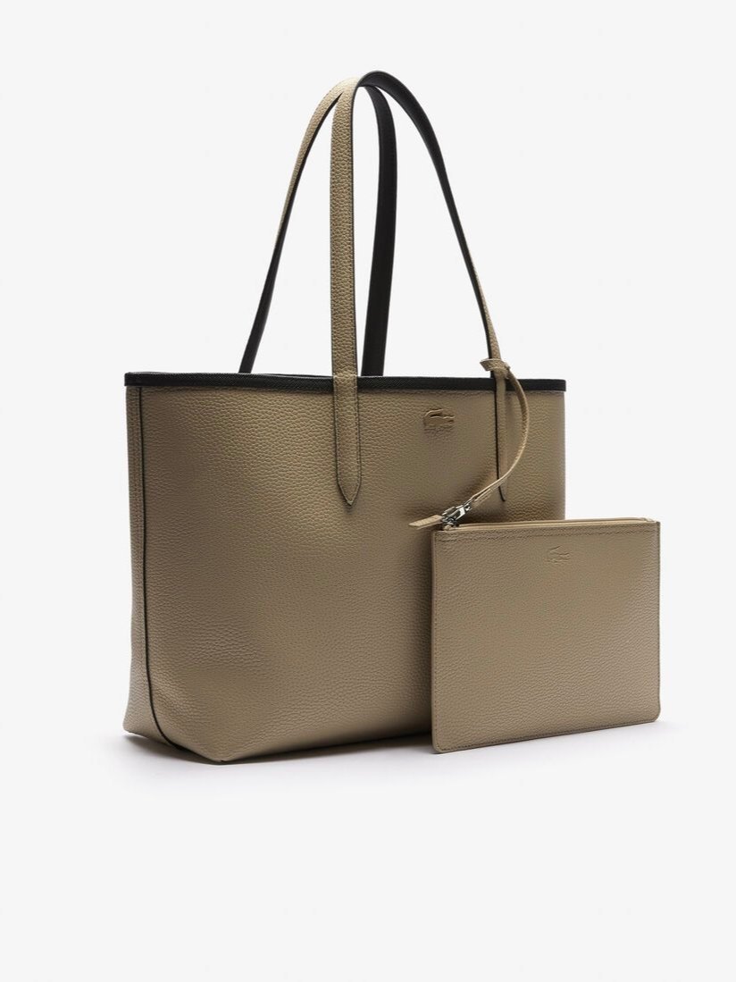 Lacoste Anna Large Reversible Shopping Bag with pouch black khaki , size 47*28