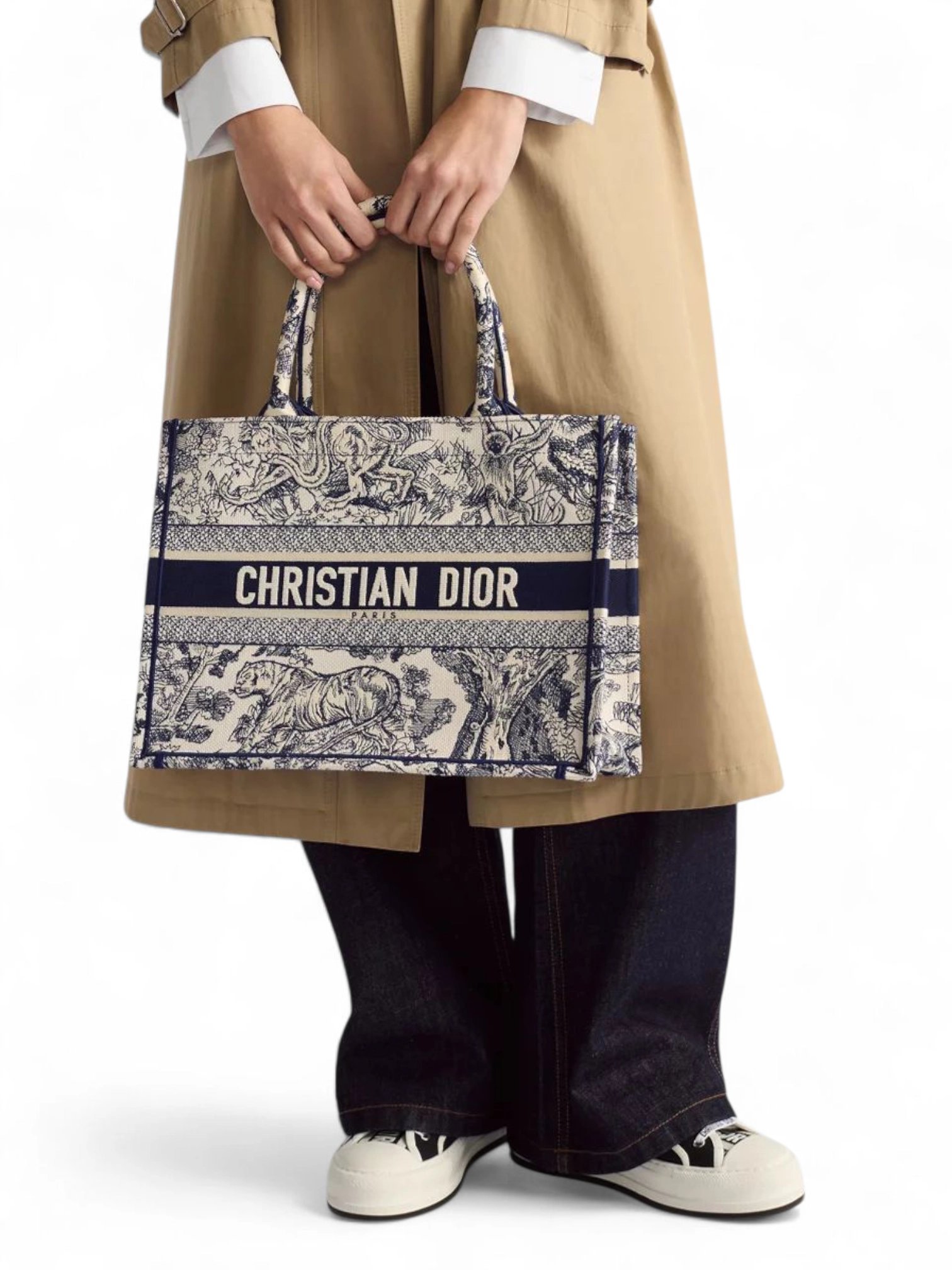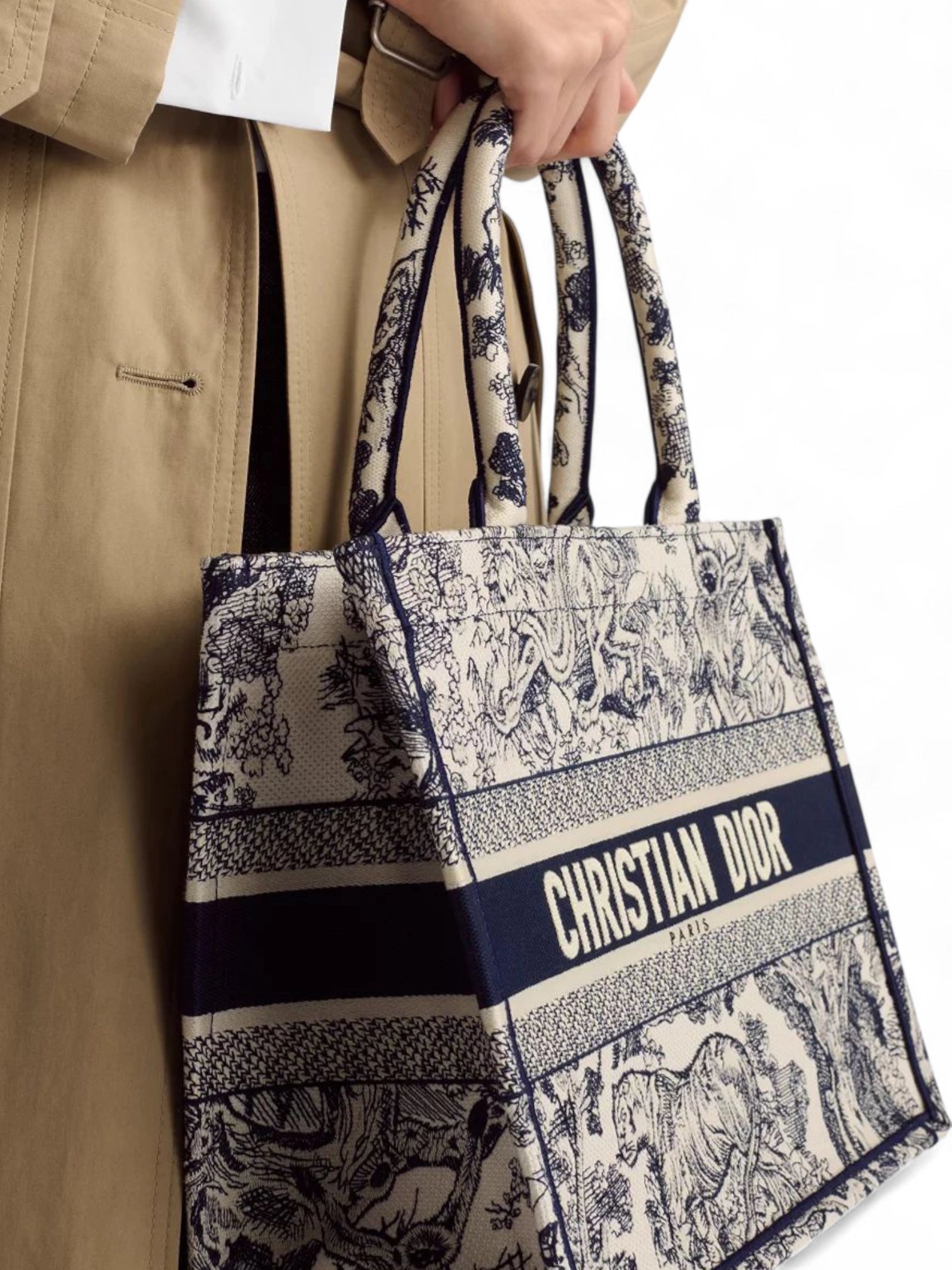 Medium Dior Book ToteEcru and Blue Toile de Jouy Embroidery + Brand Box , size 36*28