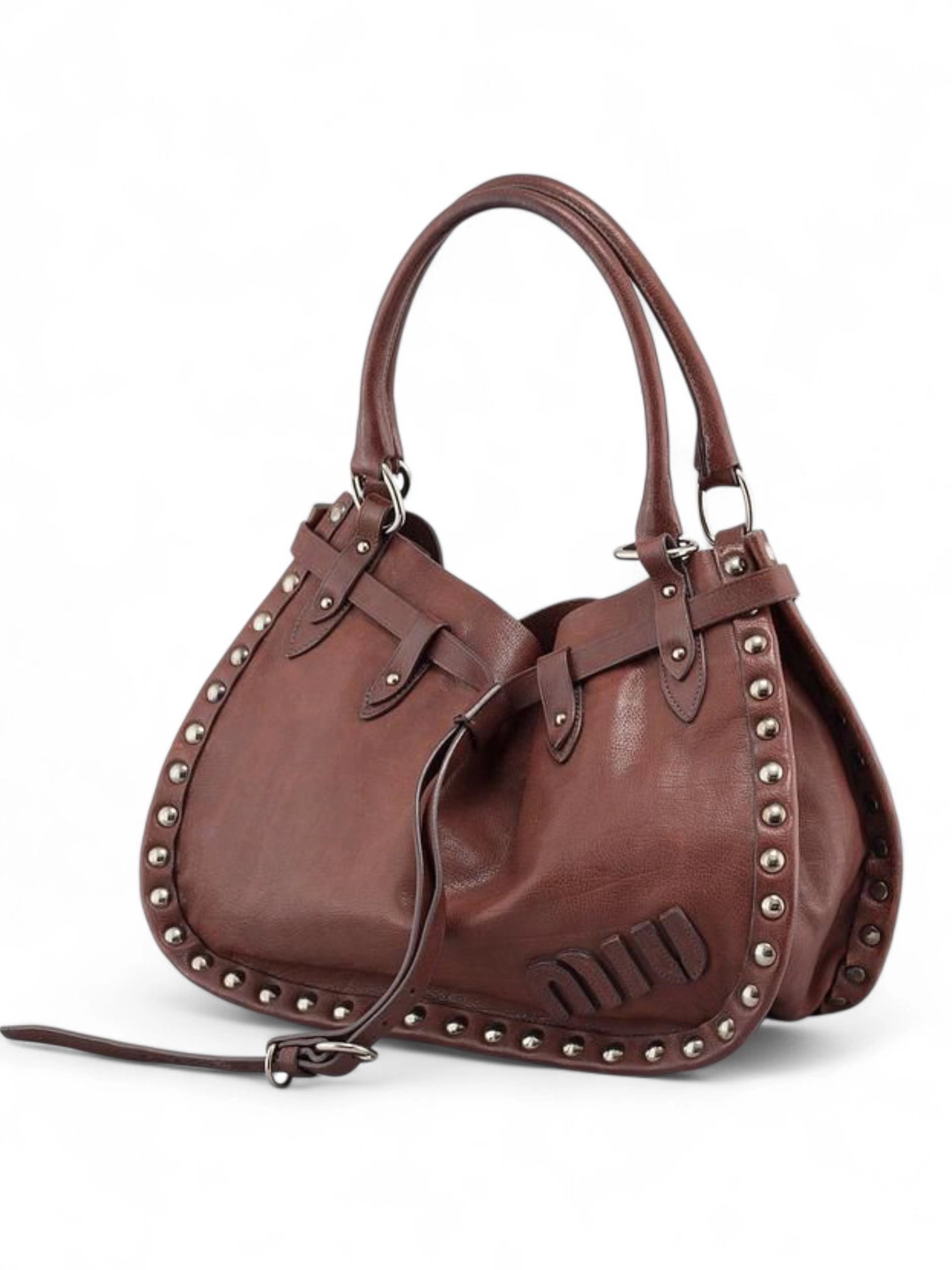 Miu Miu Brown Leather Studded Bag , size 38*24
